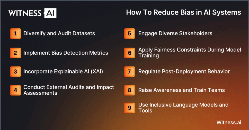 Addressing AI bias requires a combination of technical, organizational, and ethical approaches. Below are several strategies to mitigate bias throughout the AI lifecycle: